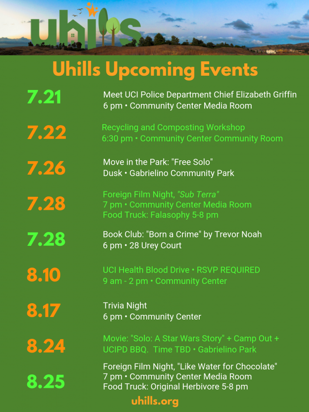 Foreign Film & Food Truck Featuring “Like Water for Chocolate” Sunday, August 25 Uhills Community Center Media Room Movie Begins at 6 pm Plus: Original Herbivore Food Truck (5-8)